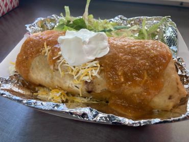 Grilled chicken or shredded pork with cheese and beans, wrapped in a flour tortilla and served with a side of Daniela's Salsa.